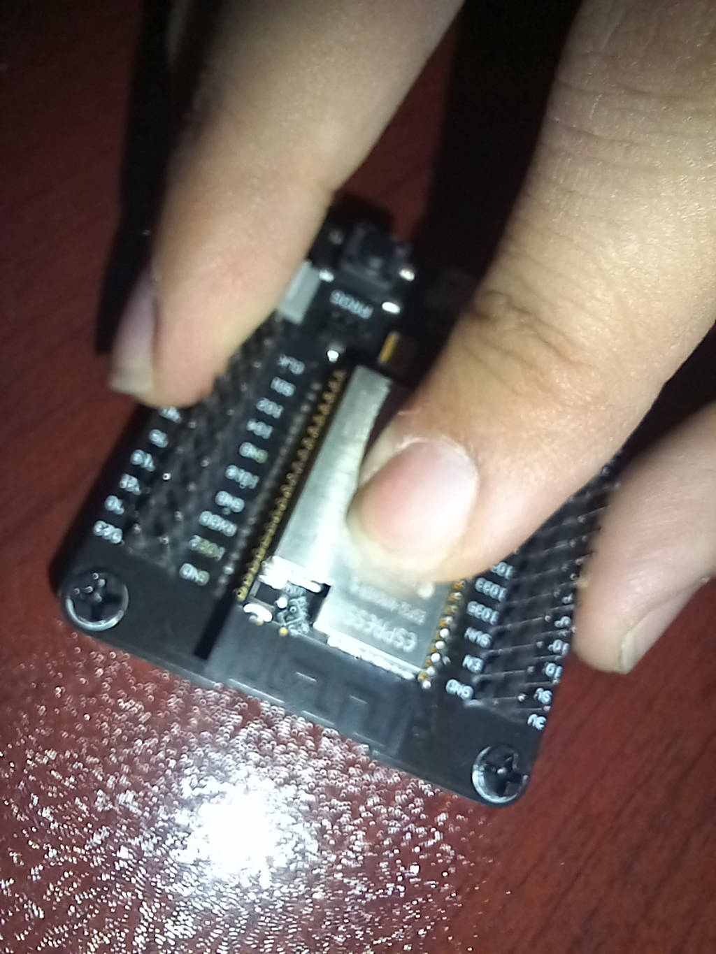 حالا اومدم جا بزنم پین هاشو درجای درست روی esp قرار دادم همه نقاط جا افتاده ولی فشار میدم پایین بشدت سفته جوری که میترسم یا پین ماژول بشکنه یا خود برد esp بشکنه و زیادی هم فشار میارم یه طرفش میره پایین طرف دیگه میاد بالا انگار جاش تنگه توی این عکس به این صورت دارم جا میزنمش